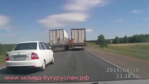 监控实拍:盲目抢行 小车被撞惨了 大卡车根本停不下来...
