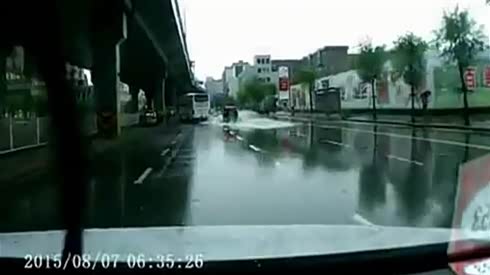 监控实拍:出租车与大巴竟然疯狂别车 太不自量力...