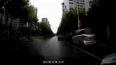 监控实拍:女司机吓尿了!骑手车轮下捡条命...