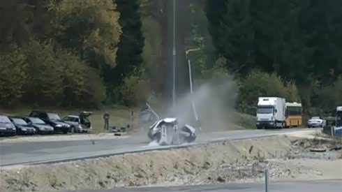 监控实拍:震撼!以200公里小时的速度 两车相撞 天旋地转...