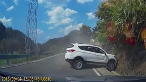 监控实拍:狭路相逢!山路遭遇女司机 倒血霉了...