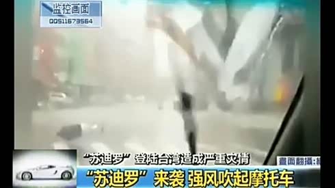 监控实拍:卧槽!台风“苏迪罗”登陆台湾 瞬间吹起摩托车