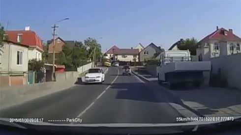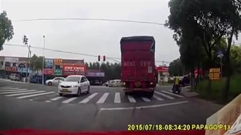 监控实拍:大卡车盲区?骑士被碾压很无助...