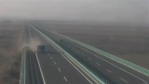 监控实拍:两大货车斗气 没见过吧 太恐怖了...