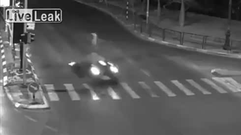 飞车撞击路障翻滚侧滑 超恐怖