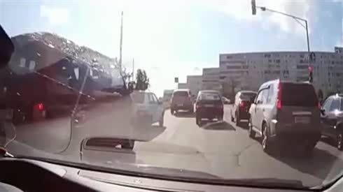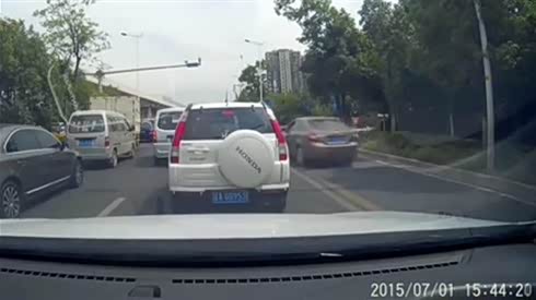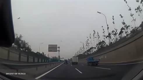 监控实拍:小车错过出口连续并线 吓尿大货车...