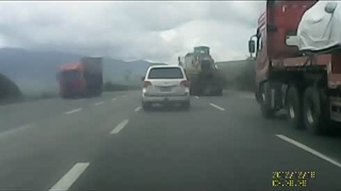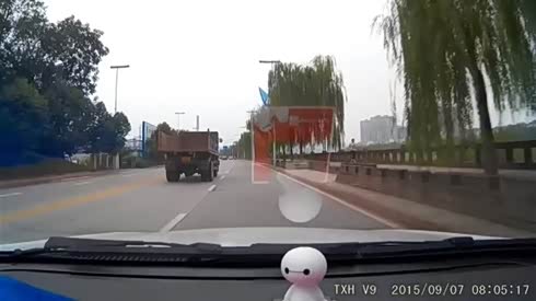 今早上上班途中偶遇大货车急刹,右侧后轮都离地了,险些造成翻车