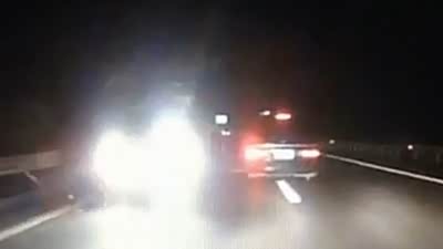 惊魂一幕!车友夜间高速突遇逆行车辆
