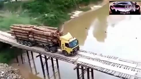 心提到嗓子眼 满载木头卡车冒险过木桥