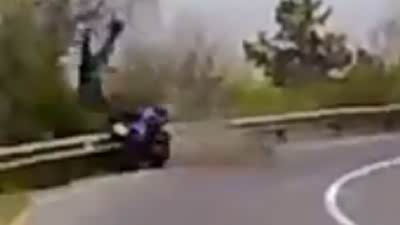 飞来横祸!男子指挥摩托车比赛被撞飞