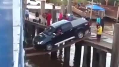 太冒险了吧?实拍皮卡仅靠两条钢板登船
