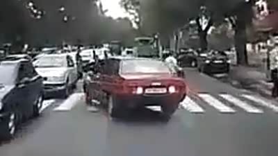 超强神躲避!实拍轿车紧急躲闪鲁莽行人