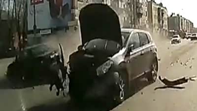车毁人也伤 实拍闯红灯SUV惨撞无辜轿车