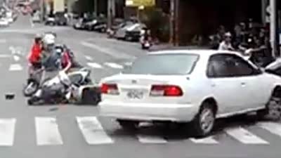 场面太混乱!闯灯轿车撞多辆摩托后逃逸