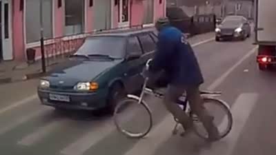 真不是碰瓷 实拍自行车猛烈撞击汽车
