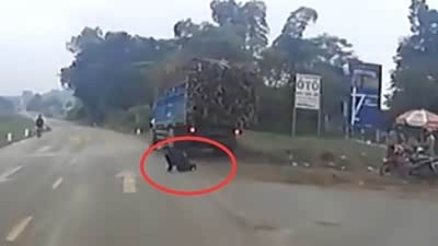 这是要碰瓷?男子遭货车撞击险遭碾压
