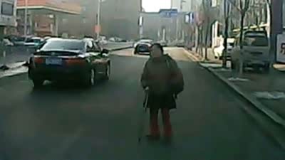 这下尴尬了 大妈碰瓷遭机智司机破解