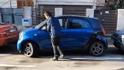 真是马大哈 车友忘拉汽车手刹至溜坡