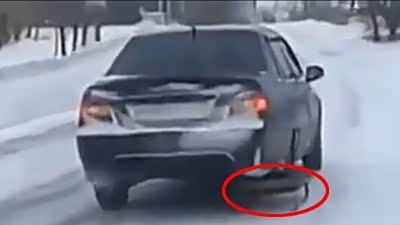 临时救急 实拍奇葩车友用雪橇代替车轮