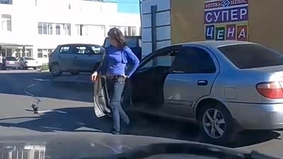 真够调皮的 鸽子拦路急坏长腿女司机