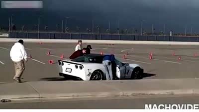 直冲倒鸭子!克尔维特C6甩尾当场悲剧