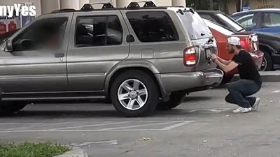 真心闲的 国外小伙恶作剧拆车牌险挨揍