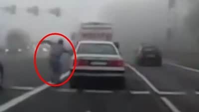 滑稽大师来了 实拍车友奔跑追赶爱车