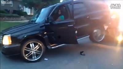 相当彪悍 黑人妇女当警察面愤怒毁车