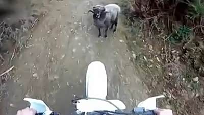 狭路相逢勇者胜 摩托骑手VS强悍山羊