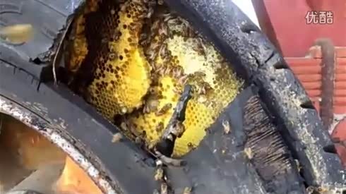 密集恐惧症慎入!旧轮胎里竟然筑起蜂巢