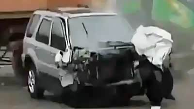失控猛兽 拖挂卡车穿越隔离带撞击SUV