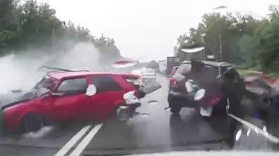 恐怖瞬间!雨天路滑高速路恐怖车祸