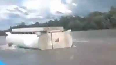简直无法相信 实拍超强大卡车深水前进