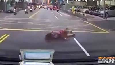 狼狈收场 台湾街头惊现“假摔姐”碰瓷