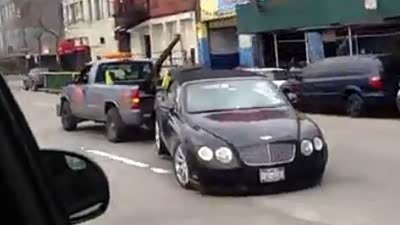 暴殄天物!宾利欧陆惨遭拖车无情蹂躏