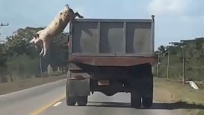 抓住机会就跳 实拍胖猪高空跳车逃生