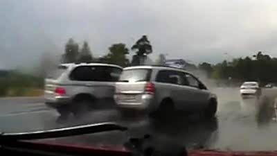 惨烈撞击!油罐车超车甩尾横扫对向小车