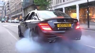 绝对过瘾!奔驰C63 AMG街头烧胎秀声浪