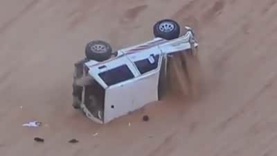 继续疯狂 阿拉伯车友沙漠冲坡各种翻车