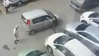绝对逼急了 实拍狂躁车友棍砸挡路车