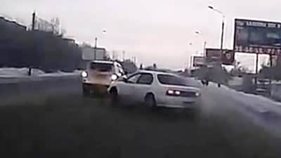 着急惹麻烦 实拍轿车超车失控当场撞车