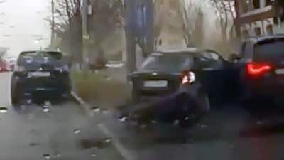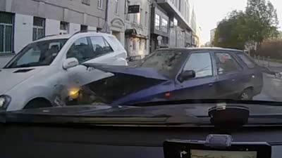等太久迷糊了?小轿车并入主路惨遭撞击