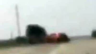 宛如炮弹 小轿车十字路口掀翻大巴车