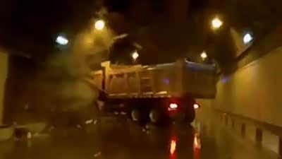 定要以此为戒 卡车隧道内失控惨烈撞车