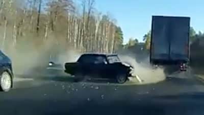 鲁莽超车惹祸 实拍悲剧轿车猛撞货车