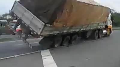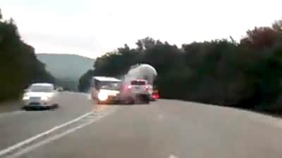 神级躲避!轿车高速行驶险撞卡车瞬间