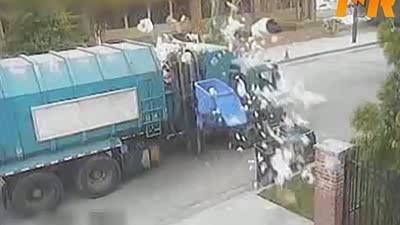 真是笑死人 狂野垃圾车爆逗倒垃圾全程