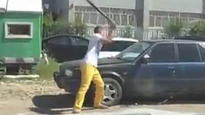 这也太狠了 小伙怒砸挡道车辆猛灌水泥