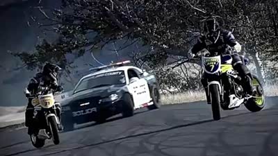 绝对视觉盛宴 警车与摩托车漂移对决