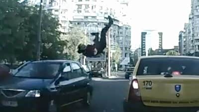 鲤鱼打挺 实拍男子横穿马路惨被撞飞